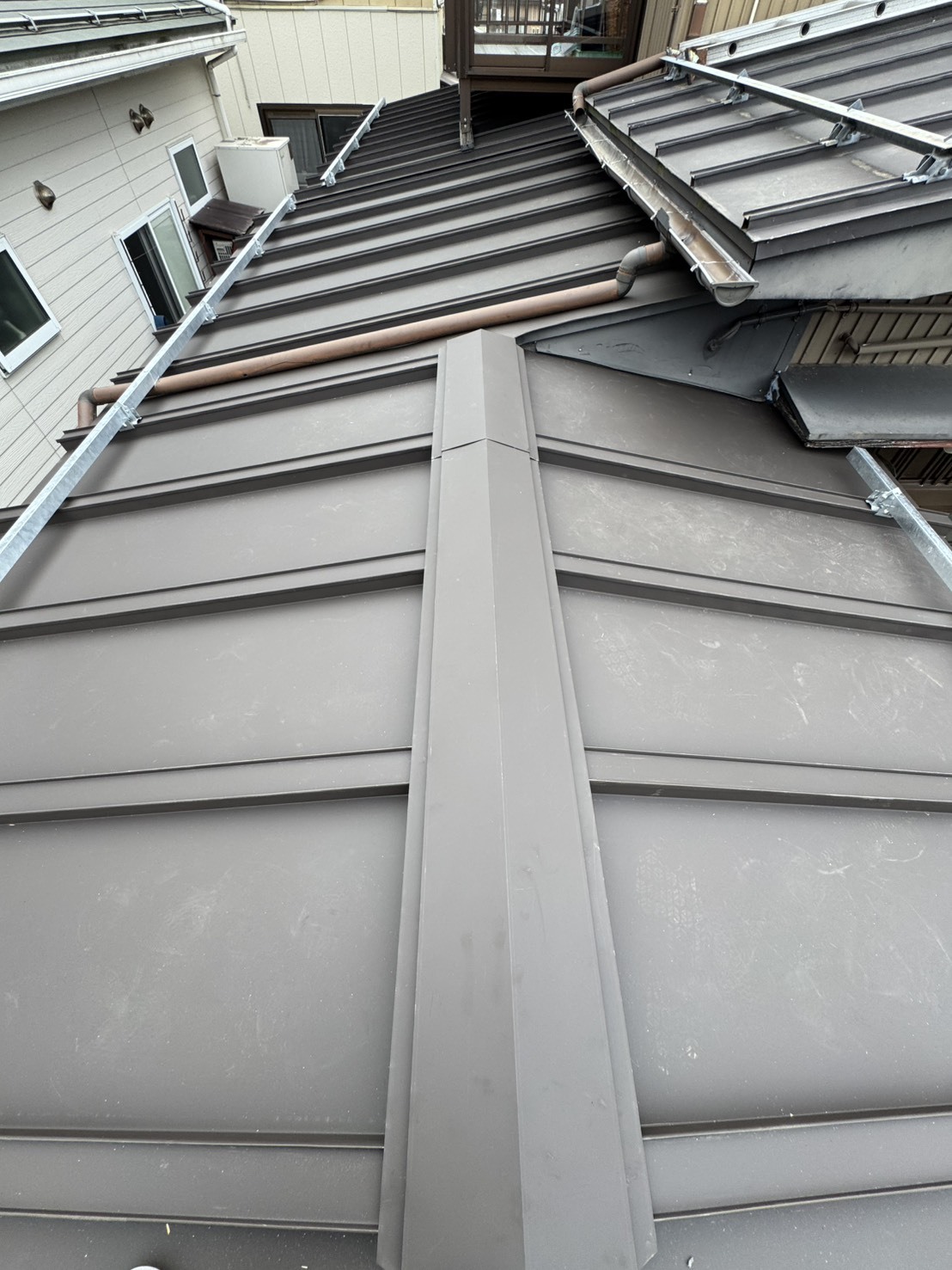 既存瓦を撤去し、SGL鋼板で葺き替えをいたしました。